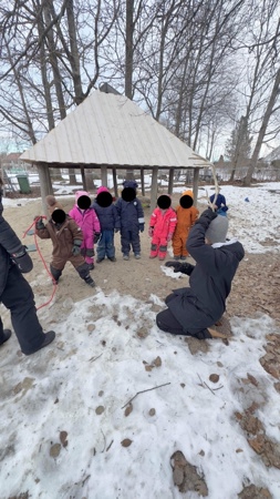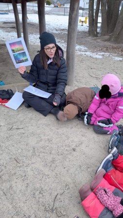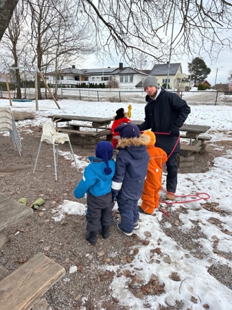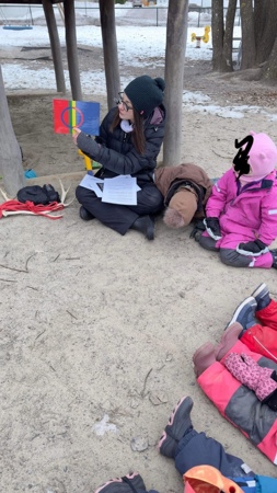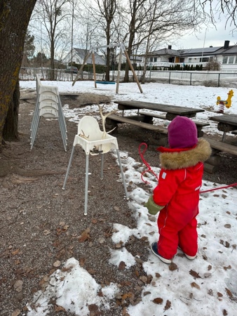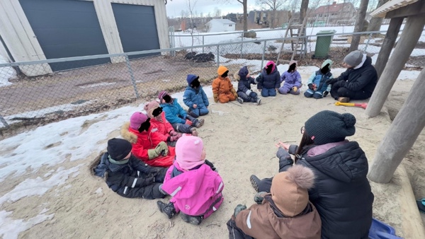 Mosebarna startet dagen med utelek i snøhaugen og på lekeplassen, før det var tid for samling. Vi pratet om samene, at de er et urfolk og hvorfor vi markerer samenes nasjonaldag i barnehagen.