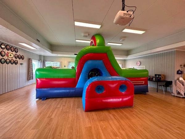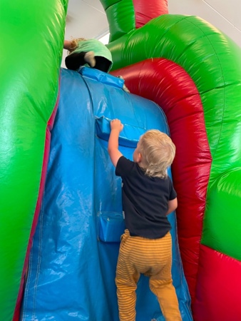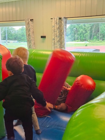 Hva gjør vel litt regn når vi har plass til hoppeslott inne!
