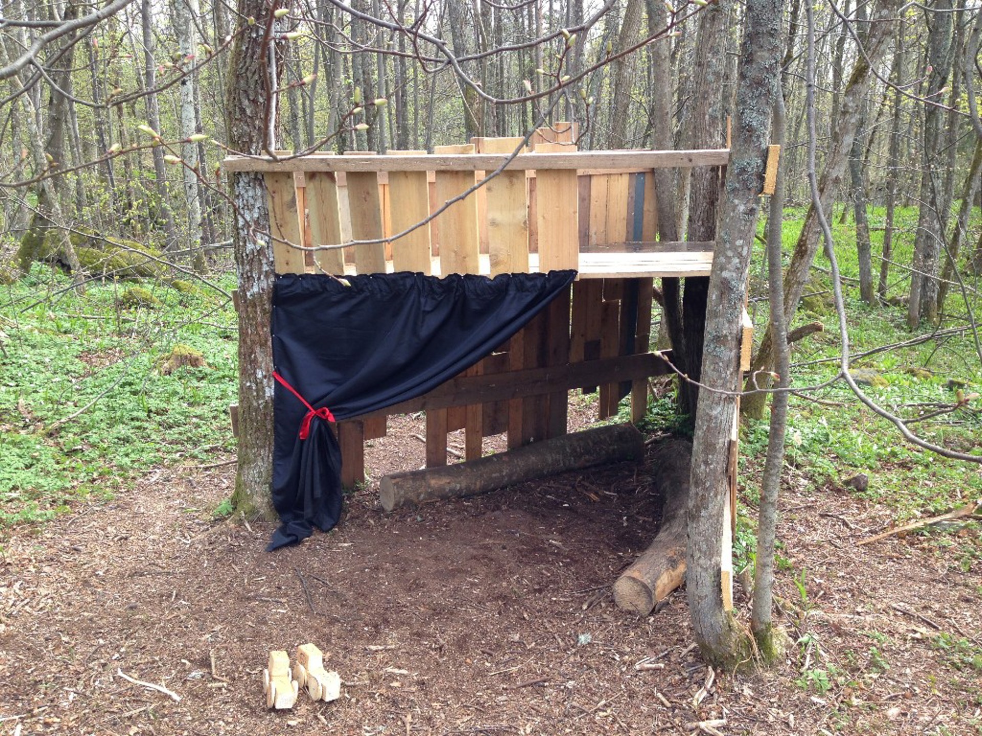 Nå er hytta vår endelig ferdig, og vi leker masse på den når vi er på tur i skogen.