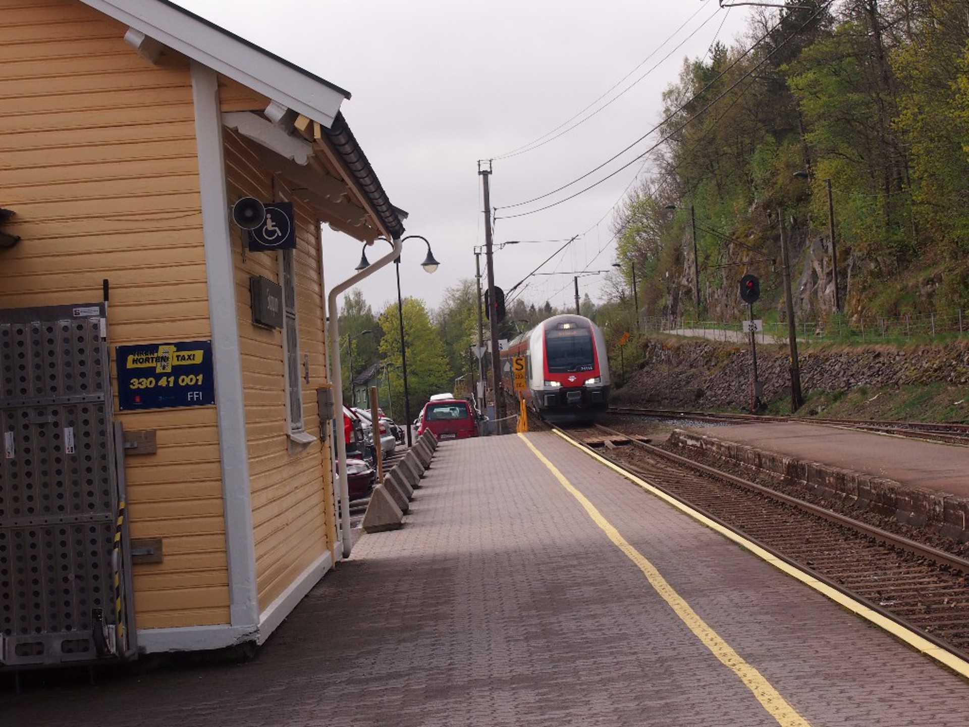 Framme i Holmestrand gikk vi ned på en lekeplass like ved stasjonen. Der lekte vi og spiste lunsj. Christine hadde bakt pizzasnurrer til oss.