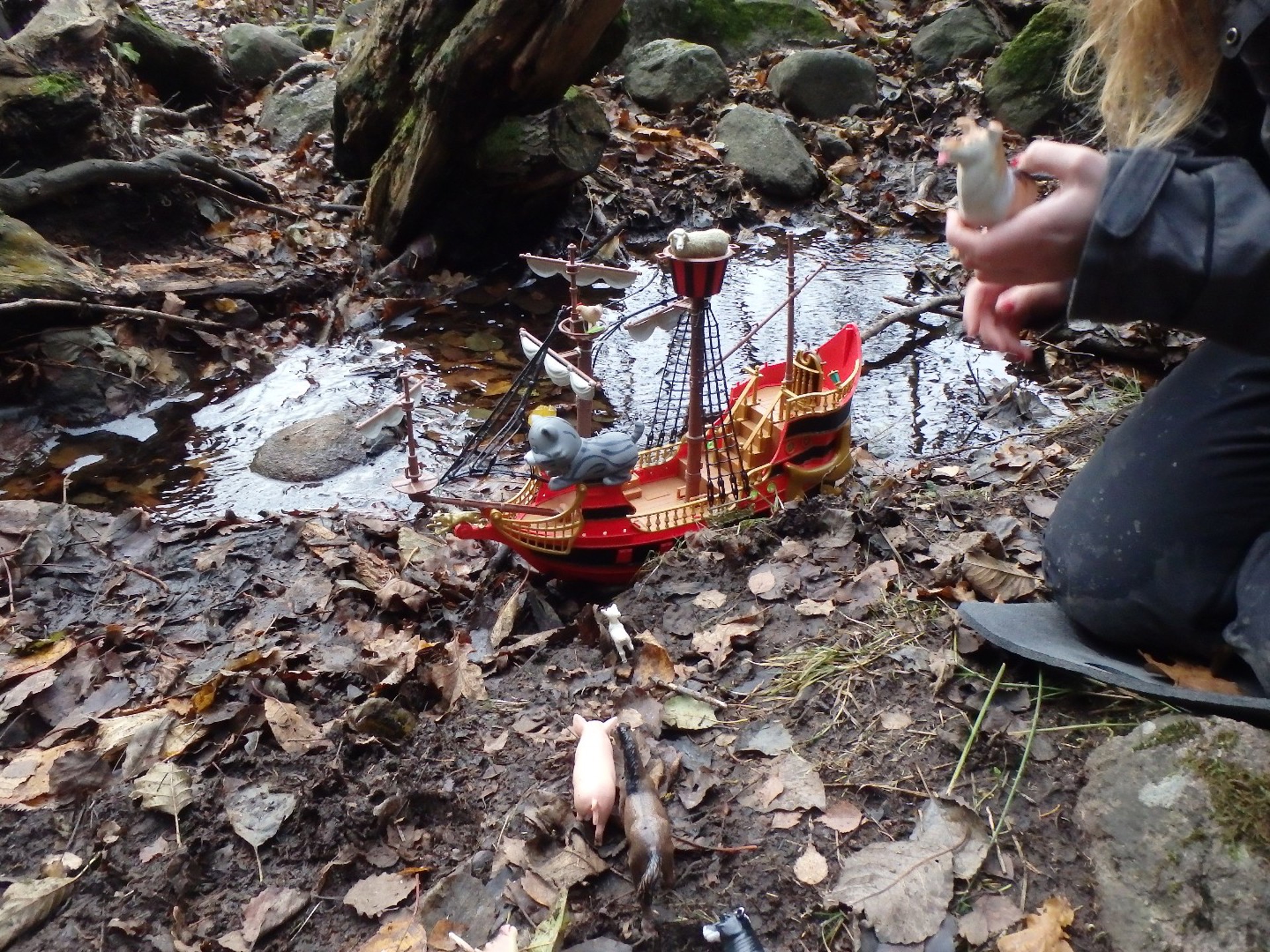 Når vi kom fram til bekken fikk vi høre eventyret av Natali. Hun hadde med geitekillingen, en stor båt og alle dyra. Det var veldig spennende!